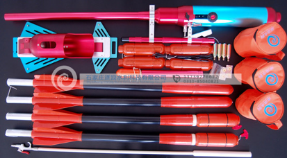 根本配置:發射器、氣瓶、繩索、充氣管、救生圈(水用)等